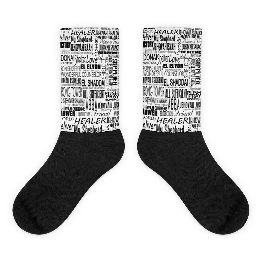 These socks are extra comfortable thanks to their cushioned bottom. The foot is black with artwork printed along the leg with crisp, bold colors that won't fade.